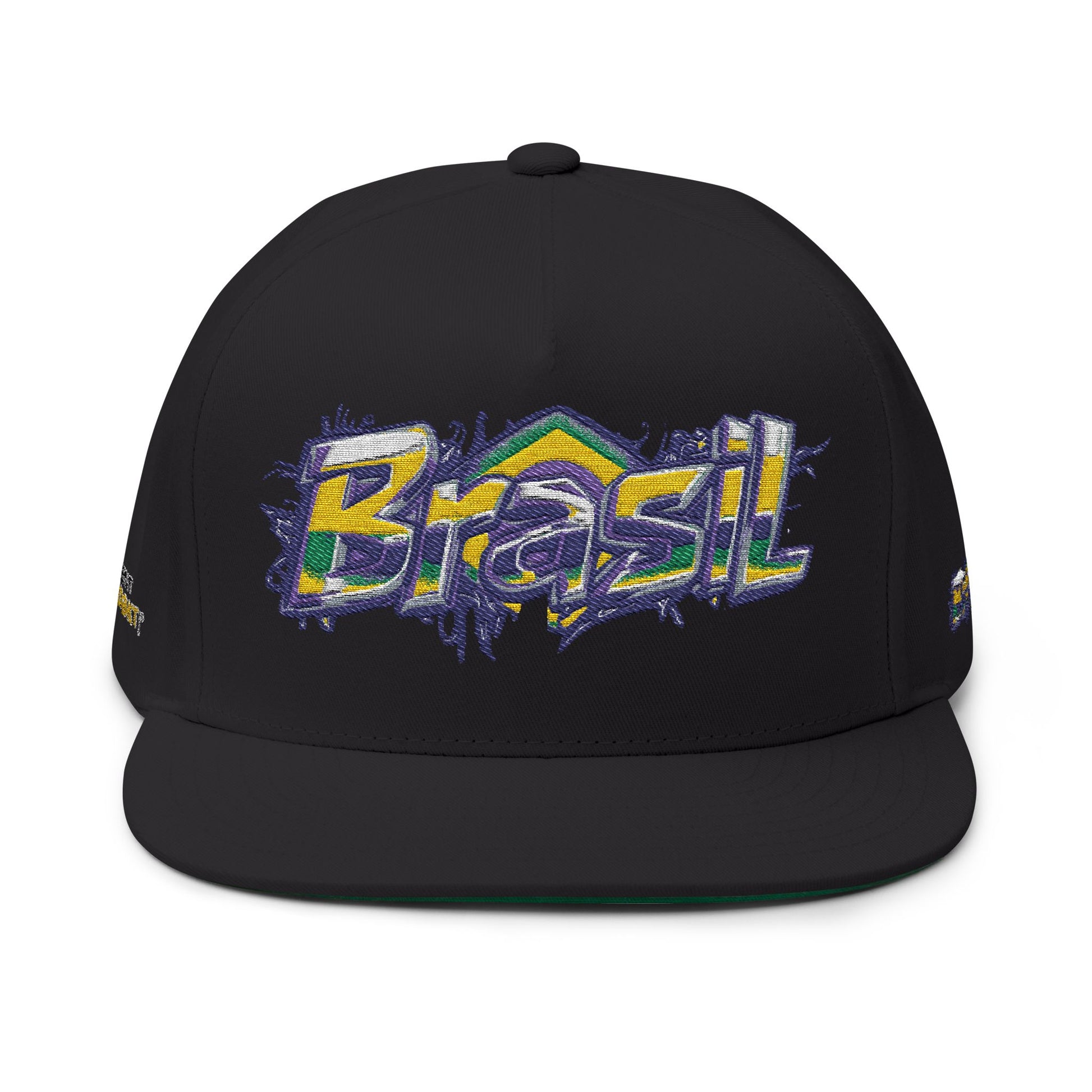 Brasil Graffiti Embroidered Flat Bill Cap — Brazilian Flag Streetwear Snapback